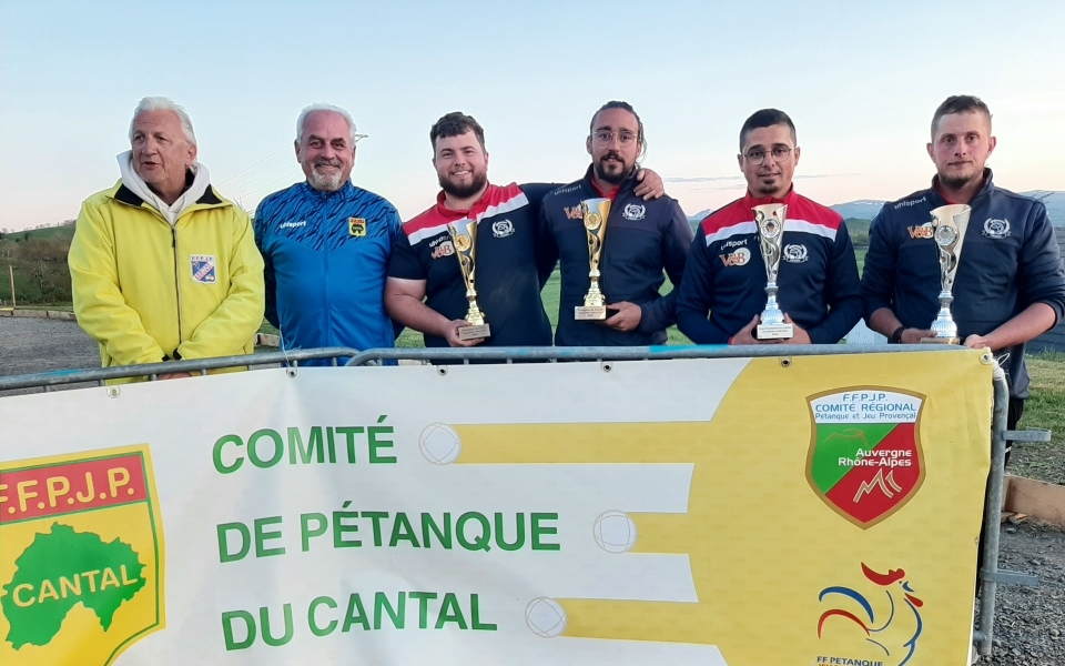 Messieurs Marc LAPORTE, Franck VIGOUROUX et Jean-Marie LATTES du Cochonnet Marmanhacois sont Champions du Cantal en Triplettes Vétérans 2026 et iront à ST YRIEIX (16) les 19 et 20 Août prochains.